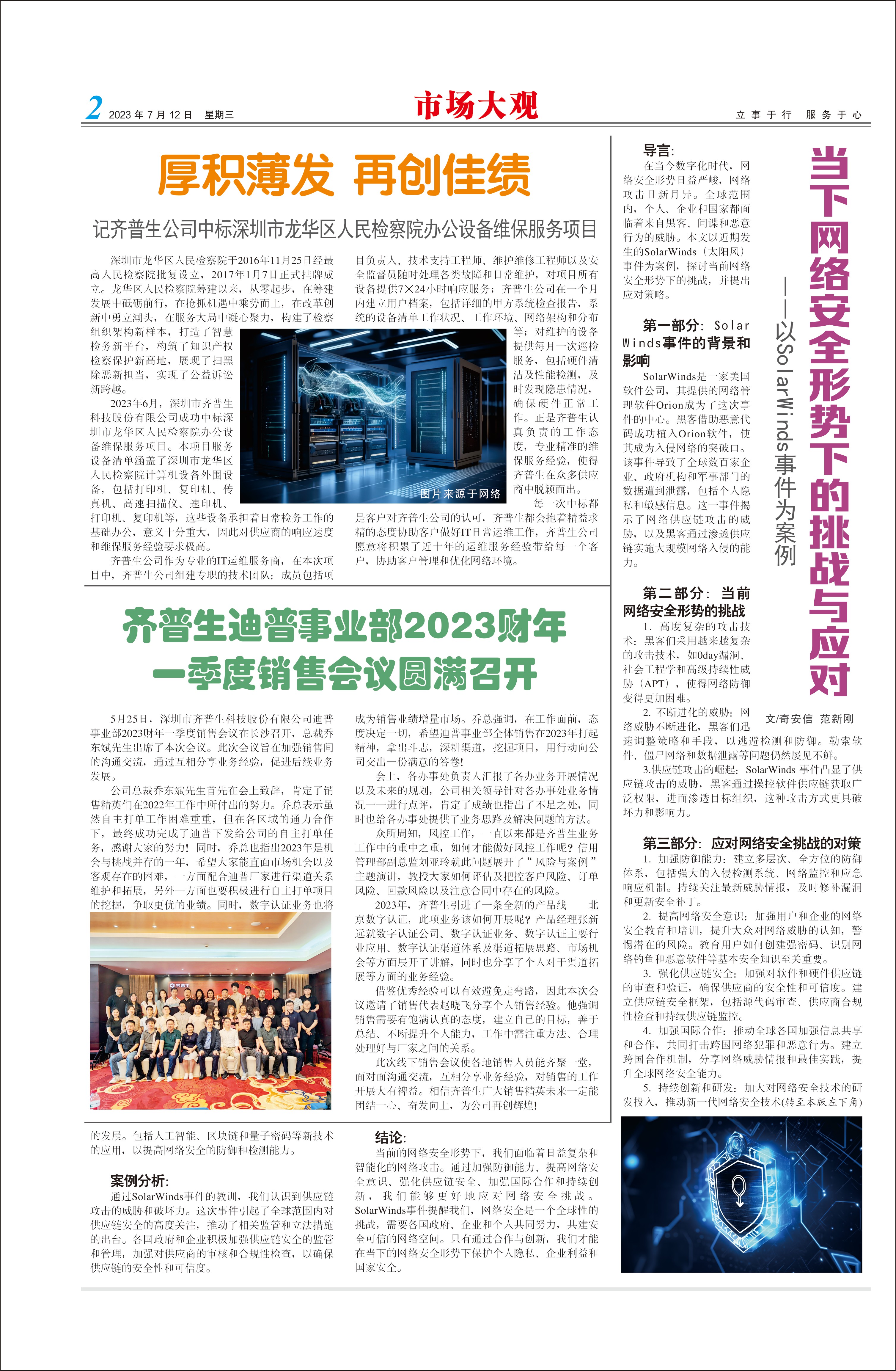 厚積薄發 再創佳績 記齊普生公司中標深圳市龍華區人民檢察院辦公設備維保服務項目