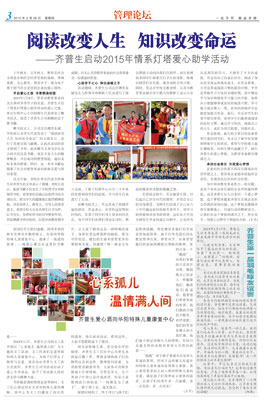 閱讀改變人生 知識改變命運 ——齊普生啟動2015年情系燈塔愛心助學活動