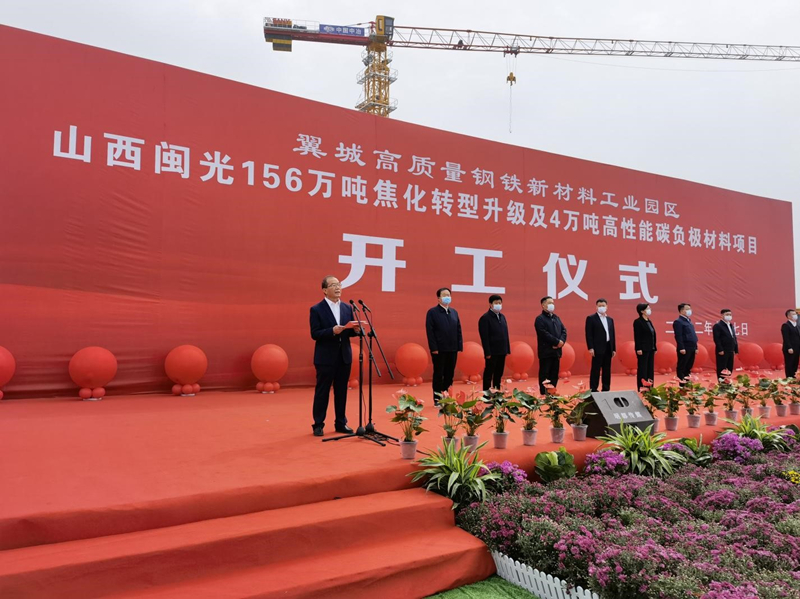 10月7日,在歡度國慶、喜迎二十大勝利召開之際,山西閩光156萬噸焦化轉(zhuǎn)型升級及4萬噸高性能碳負(fù)極材料項(xiàng)目在翼城高質(zhì)量鋼鐵新材料工業(yè)園區(qū)舉行了隆重的全面開工儀式。開工儀式由翼城縣政府組織,臨汾市領(lǐng)導(dǎo)、福建三鋼、晉南鋼鐵、山西閩光新能源及各總包、施工單位參加了開工儀式。公司董事長魏新民、副總經(jīng)理宋志順、副院長李慶生、山西分院負(fù)責(zé)人應(yīng)邀出席開工儀式并作為總包、施工單位代表發(fā)言。
