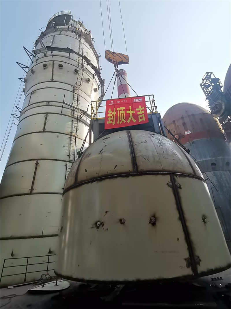由山冶設計EPC總承包的衢州元立公司新建1號1280m3高爐配套兩座熱風爐于2025年1月24日順利封頂,為后續耐材砌筑施工創造了有利條件。本項目涉及原有系統拆除、爐殼拼裝場地非常狹小、爐殼吊裝要跨越煤氣管廊及氧氣氮氣等各種氣體介質管廊等,給新建熱風爐安裝施工帶來了諸多困難。山冶設計元立高爐項目部精心組織策劃、積極和業主溝通協調、多次組織專題會對施工機械、施工方案等進行研討,利用廠區道路和3號熱風爐場地作為爐殼拼裝場地先行安裝1號2號熱風爐爐殼,待封頂后再進行3號熱風爐爐殼的安裝。三座熱風爐可保證新建高爐順利投產,4號熱風爐的安裝施工需等待原有配電室等拆除完成后再進行樁基、基礎和爐殼的安裝施工。