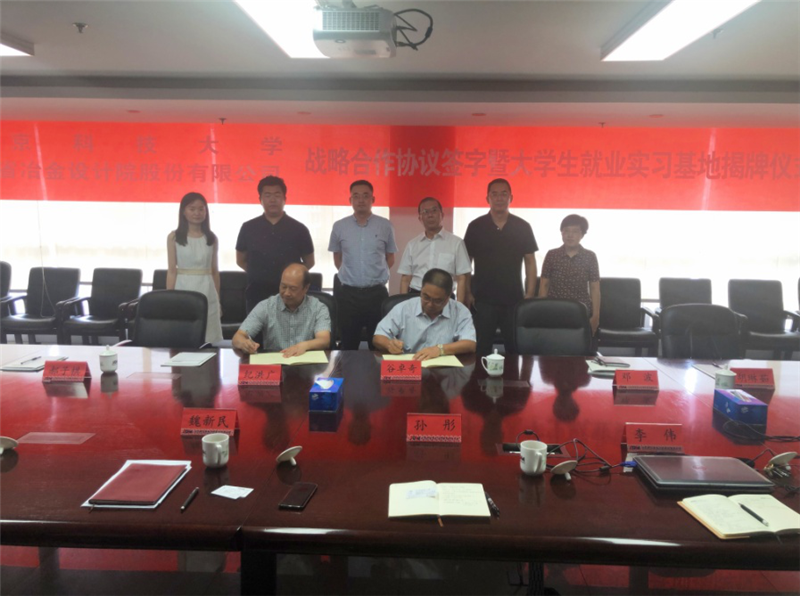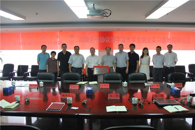 2019年7月23日,山冶設(shè)計與北京科技大學(xué)戰(zhàn)略合作框架協(xié)議簽字儀式暨北京科技大學(xué)大學(xué)生就業(yè)實習(xí)基地揭牌儀式在濟南舉行。北京科技大學(xué)土木與資源工程學(xué)院黨委書記紀洪廣,黨委副書記鄧波一行4人,公司董事長魏新民,黨委書記谷卓奇,副總經(jīng)理孫彤及相關(guān)科室人員出席了簽字儀式。